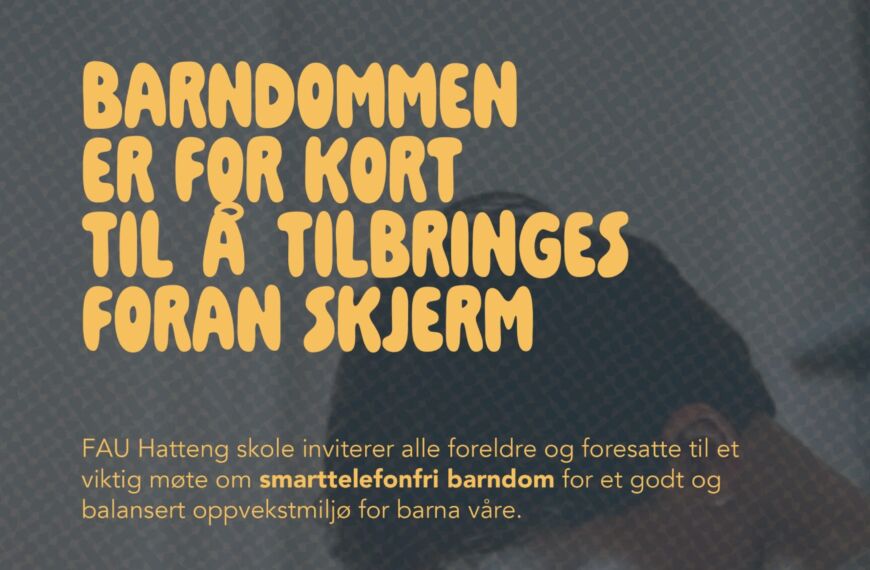 FAU Hatteng skole inviterer til et møte om smarttelefonfri barndom torsdag 15. januar kl. 19.30 på rådhusets møterom i 2 …