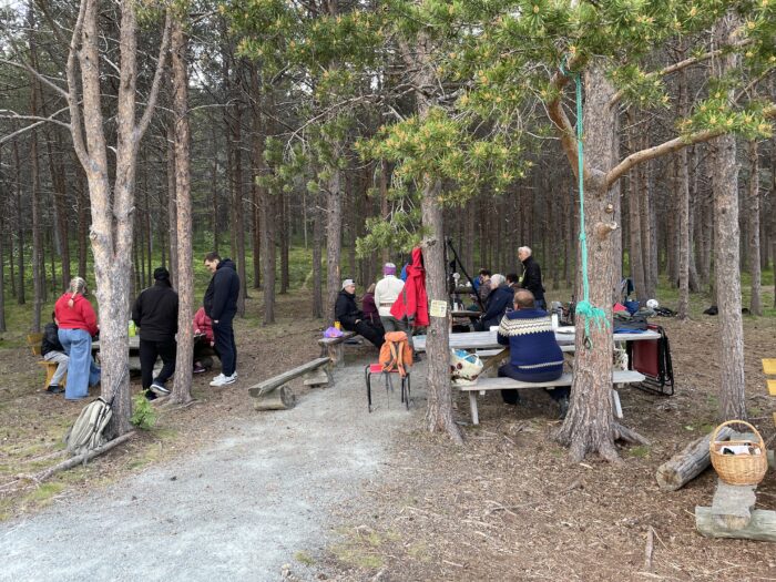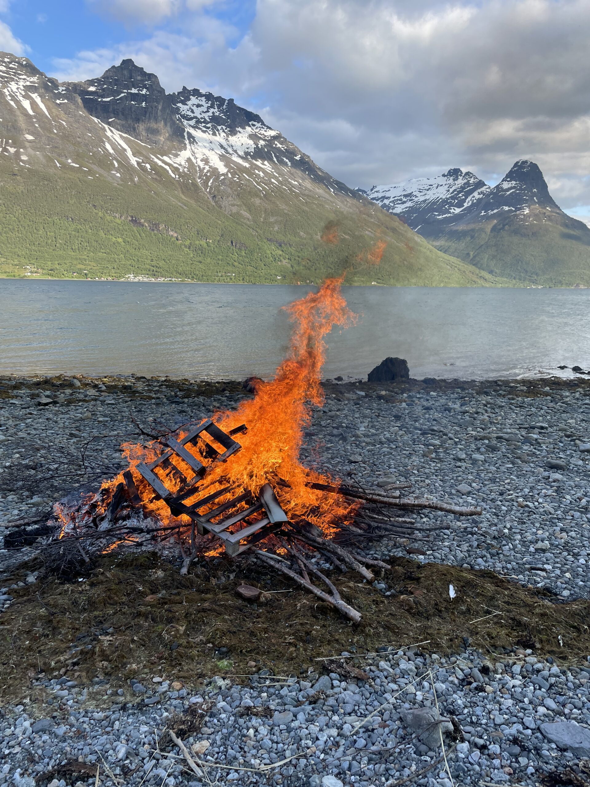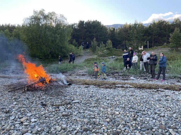 Laget serverte kaffe og grilla karbonader, i tillegg til alt det folk hadde med seg. På tross av sol og fint vær, ble det nok litt kaldt for noen i den litt sure nordavinden. Men folket storkosa seg og praten gikk rundt om. Et lite åresalg nådde en også å gjennomføre underveis. Prikken over i-en ble det når storbålet blei tent og røyk og flammer signaliserte at vi nå er kommet midtsommers.