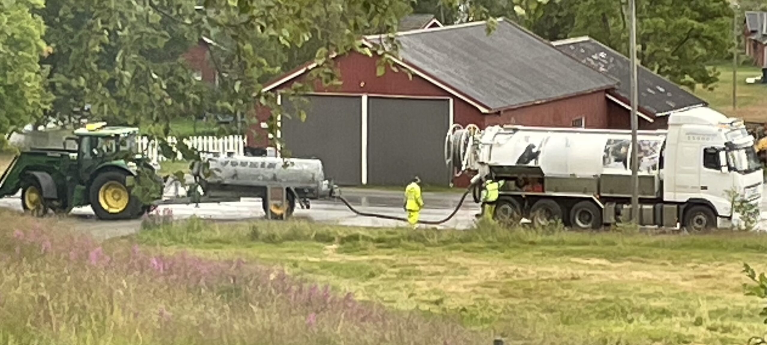 Avfallsservice er på plass med sin spesialbil for kloakktømming, assistert av traktor med tømmevogn som gjør jobben med tanktømming og frakt til tankbilen som blir lastet opp via slange. Det betyr en bedret situasjon for fjæra rundt tanken i første omgang. På lengre sikt må kommunen sørge for en annen løsning for overløpsvannet enn å la det renne fritt ut i flomålet, uttaler de berørte.
