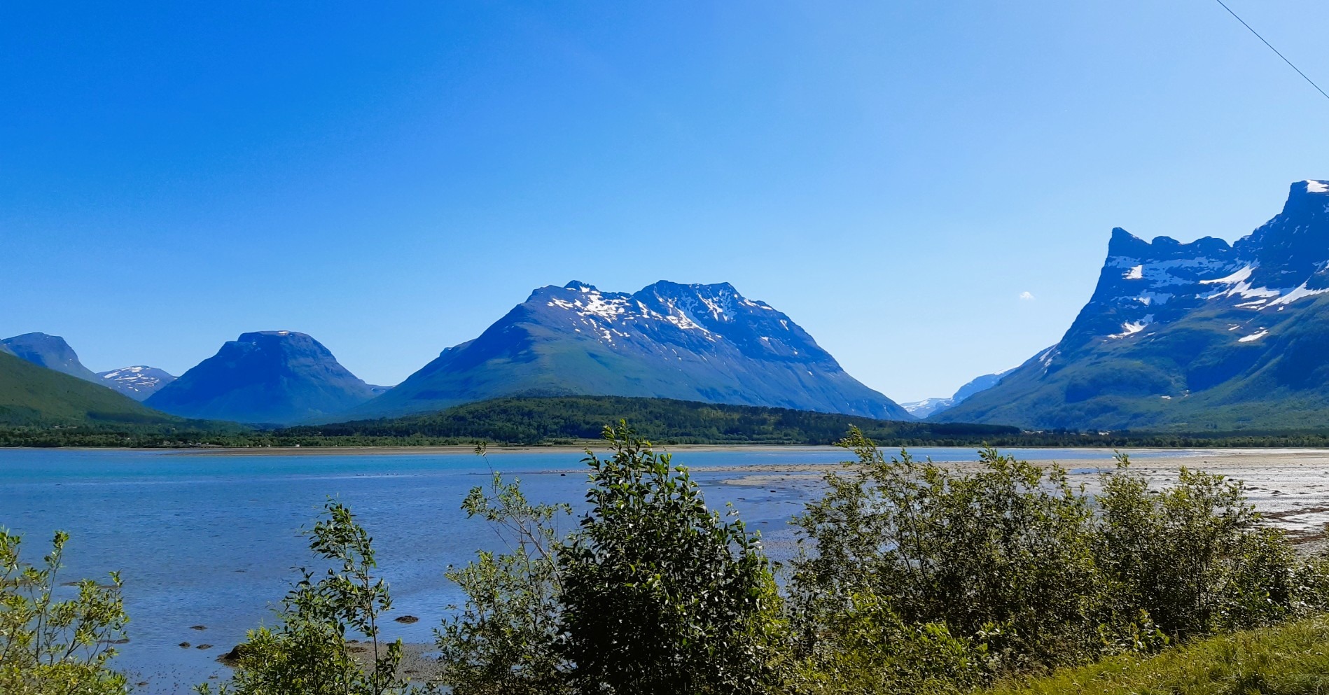Det er sol fra skyfri himmel og flere steder i Storfjord rapporteres det om 27-28 grader.