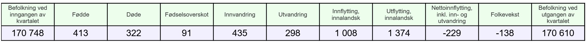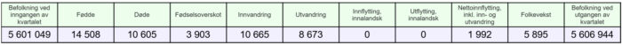 For landet i sin helhet er befolkningen økt med 5 895 innbyggere til 5 606 944: